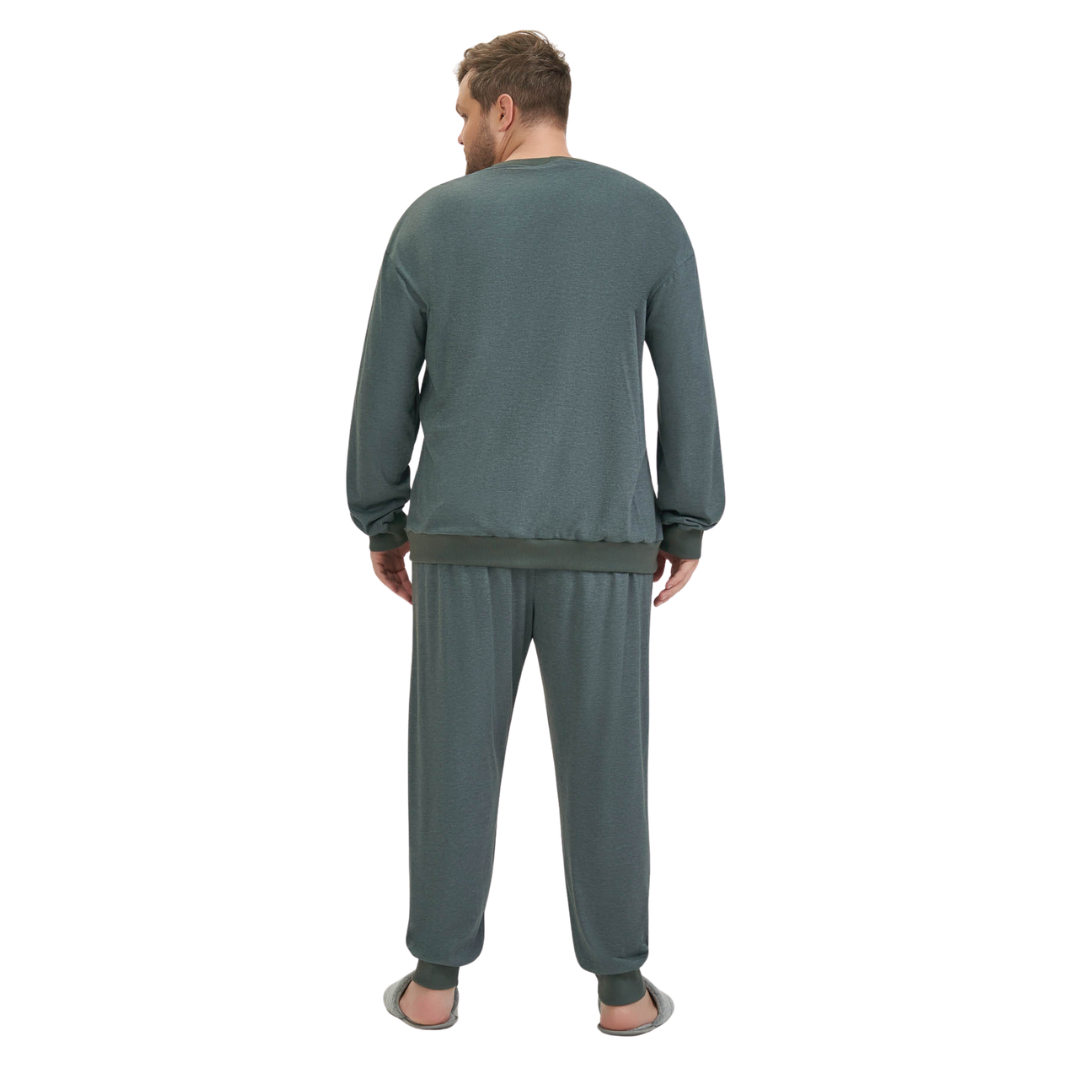 Pijama de inverno plus size masculino com blusa de manga longa e calça jogger. Macio, prático e estiloso para relaxar com conforto nos dias frios.