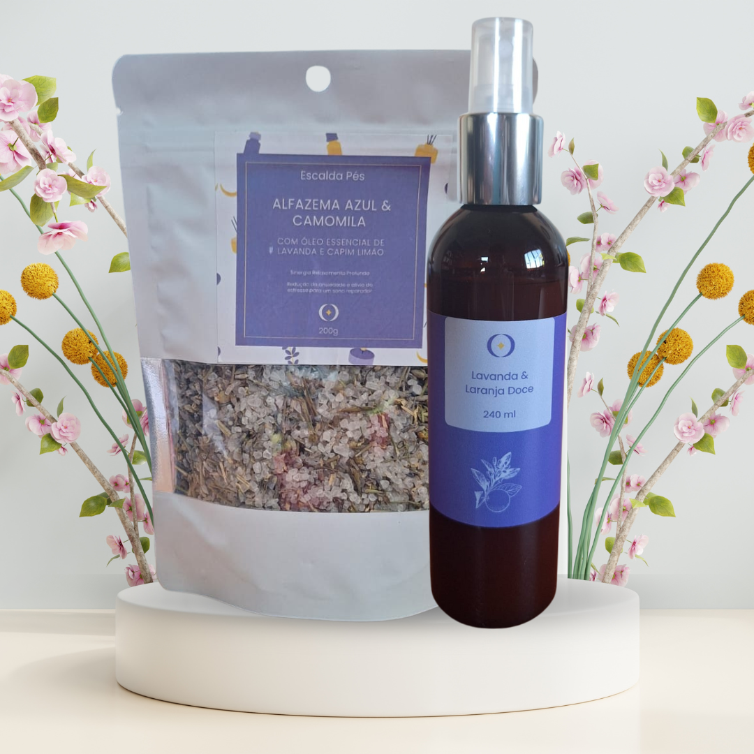 Sono tranquilo começa com relaxamento Kit com escalda-pés e spray natural que acalma corpo e mente, alivia tensões e prepara você para uma noite de sono profunda e reparador. Ideal para presentear 🙂